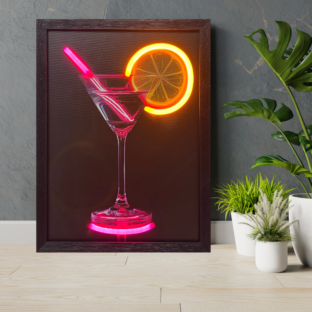Add a touch of nightlife glamour to your walls with this stylish LED Neon Framed Wall Art. Featuring a sleek cocktail glass illuminated with glowing neon accents, including a vibrant orange slice and bright pink straw, this artwork is perfect for creating a fun, modern vibe in kitchens, bars, lounges, or entertainment spaces.
